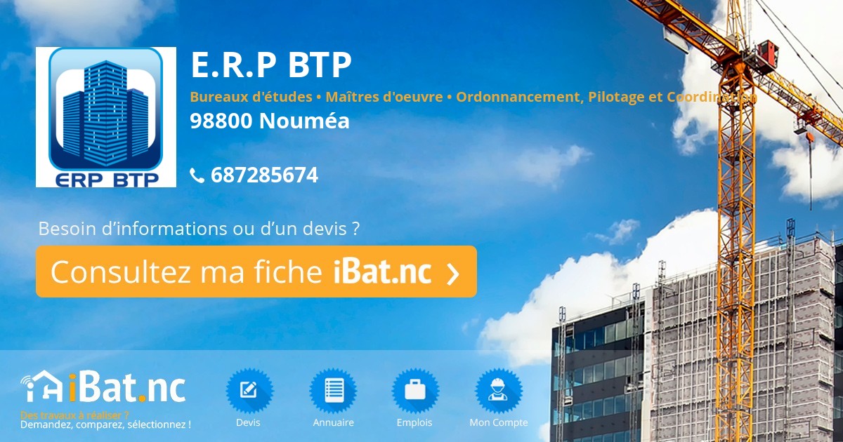 ERP BTP SARL, est un Bureau d'études créé en 2012, et géré par Olivier RONDEAU, Ingénieur en économie de la Construction. Spécialisé dans les missions de Maîtrise d'oeuvre de conception et de réalisation, d'économie de la construction, de pilotage et de coordination et d'assistance à maîtrise d'ouvrage technique pour tous les types de bâtiments en neuf comme en rénovation ou pour la reprise de désordres de toutes natures.