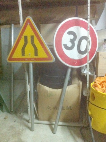 -Panneaux de signalisation (2chaussées rétrécie- 2 travaux-2 vitesse 30KM/H° + un panneau avec chevrons: 6000F pièce (neuf: 11000F pièce)