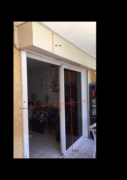 A vendre porte fenêtre Alu couleur blanche, vitres teintées fumées, côtes tableau L=2,40 m H= 2,17 m